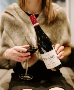 Knudsen Vineyards' fresh-faced Pinot noir is from the Dundee Hills of Oregon. Red raspberry, spiced cherry, and blood orange emerge from the glass, followed by gentle notes of cola paired perfectly with dark chocolate. To make the pairing even more romantic, grab a bag of Ghirardelli dark chocolate duet hearts!